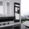 Termoarredo Kira Bath con fondo nero e alluminio spazzolato .Hotech Design